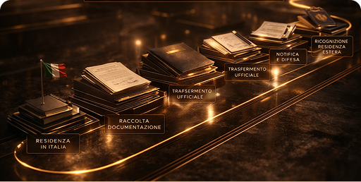 Dalla cancellazione anagrafica italiana al riconoscimento formale della residenza estera. Ogni passaggio documentato e difendibile.